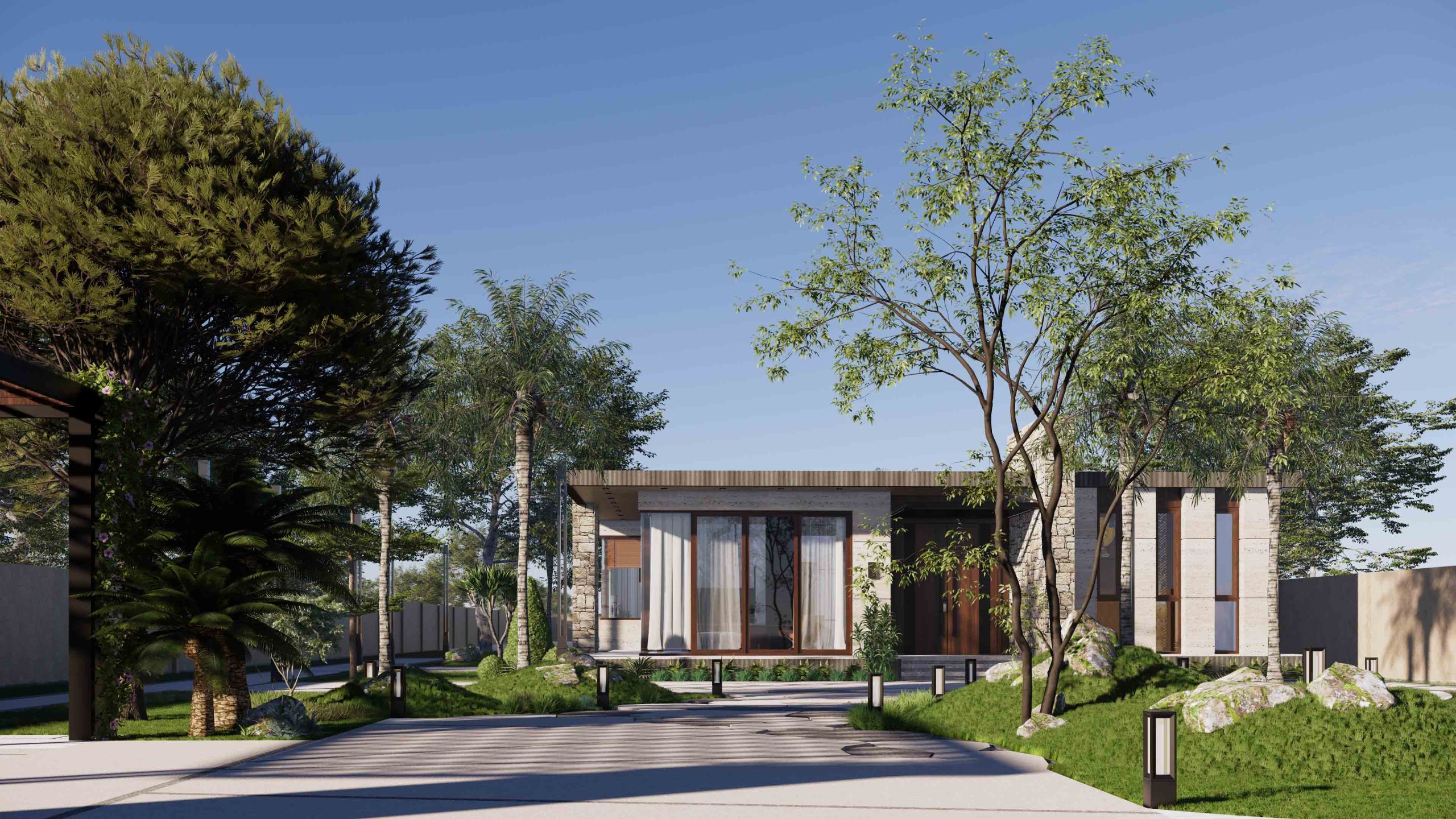 Dự án thiết kế biệt thự sân vườn Củ Chi với diện tích rộng lớn 2100m2 – là món quà tình thân từ cô con gái dành tặng người cha kính yêu. Biệt thự là một kiệt tác kiến trúc hiện đại, hòa quyện giữa thiên nhiên và những tiện ích tân tiến.