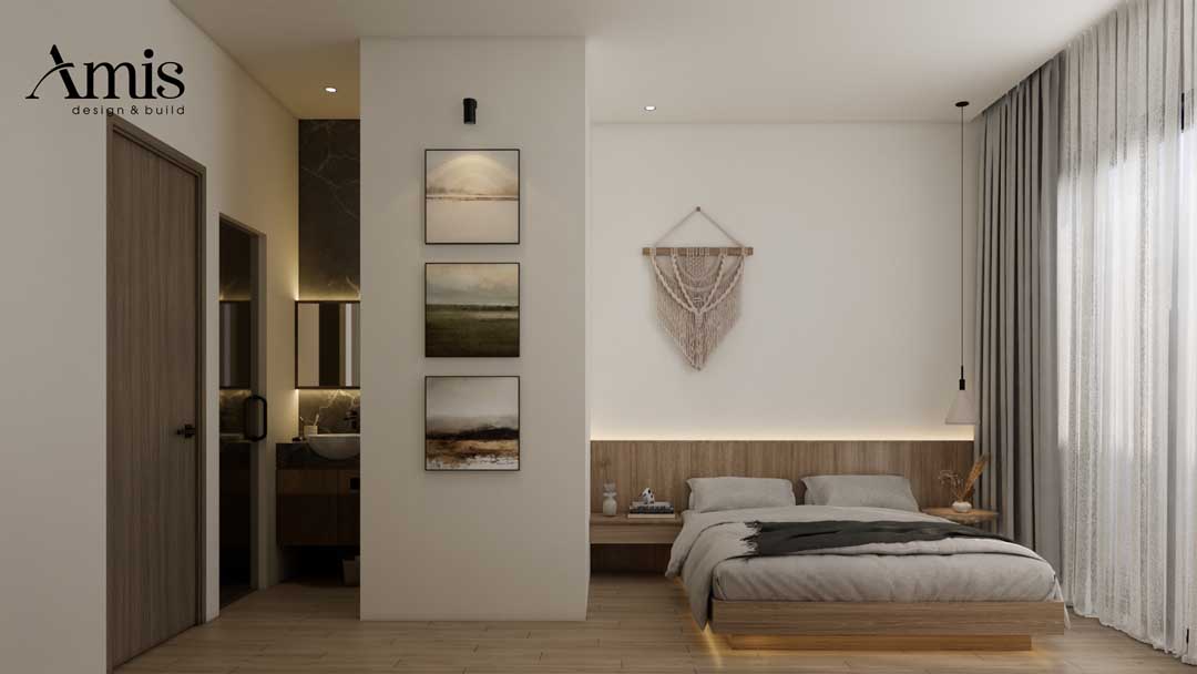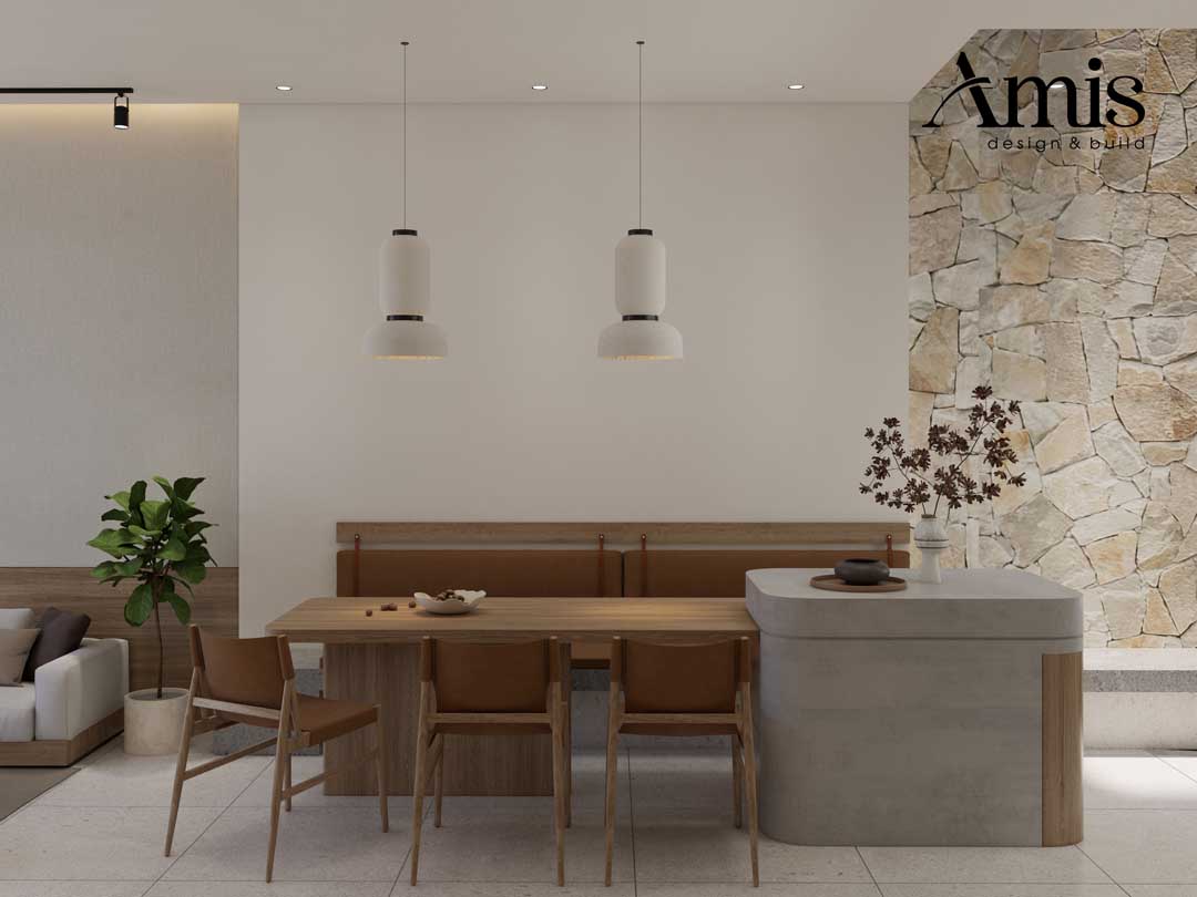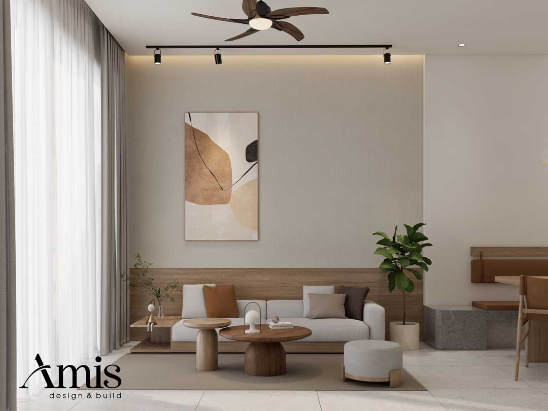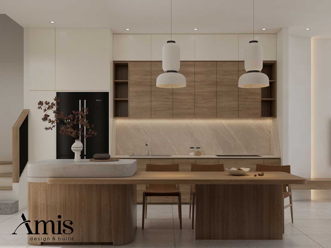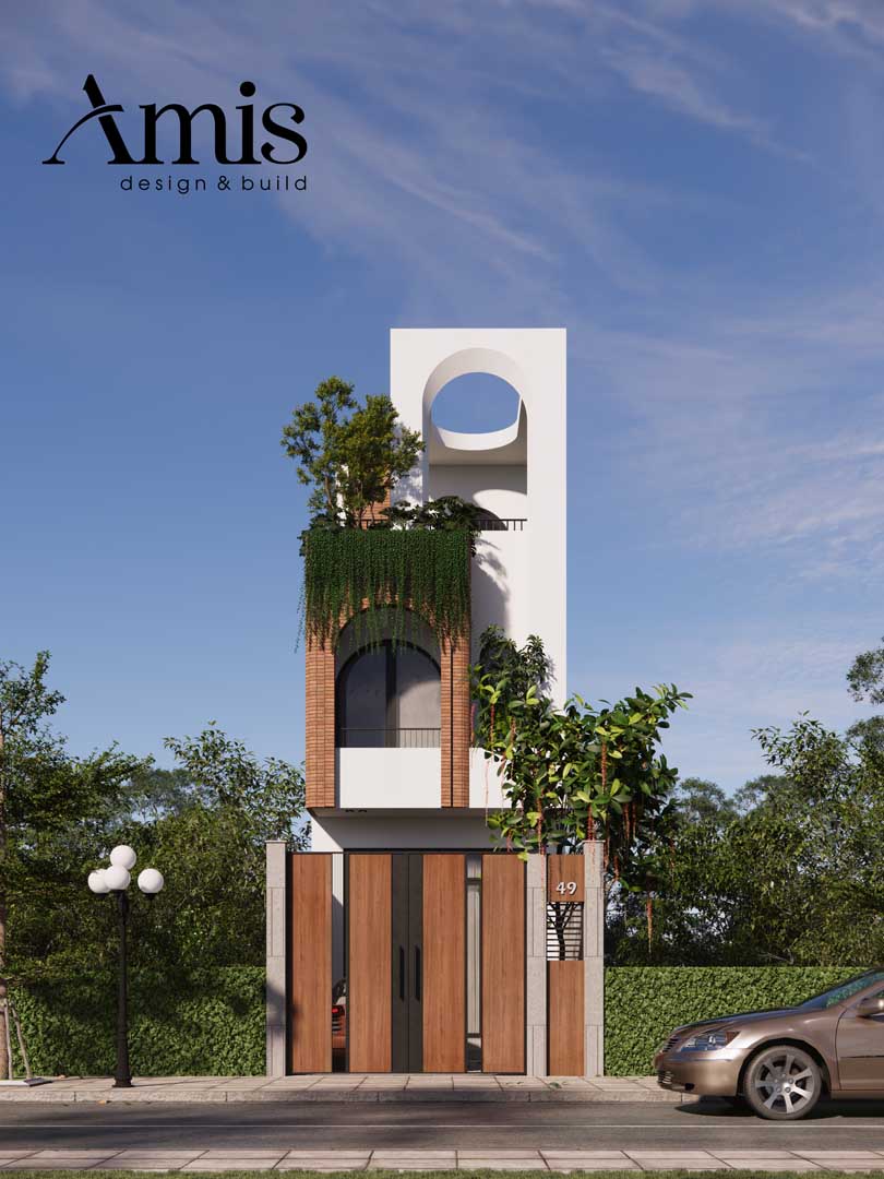 Ý tưởng thiết kế nhà phố 360m2 xuất phát từ khát khao tạo ra một tổ ấm hiện đại nhưng không kém phần ấm cúng và gần gũi. Kiến trúc sư Amis Design đã khéo léo vận dụng ngôn ngữ thiết kế tối giản, loại bỏ những chi tiết thừa để tập trung vào bản chất của không gian sống.