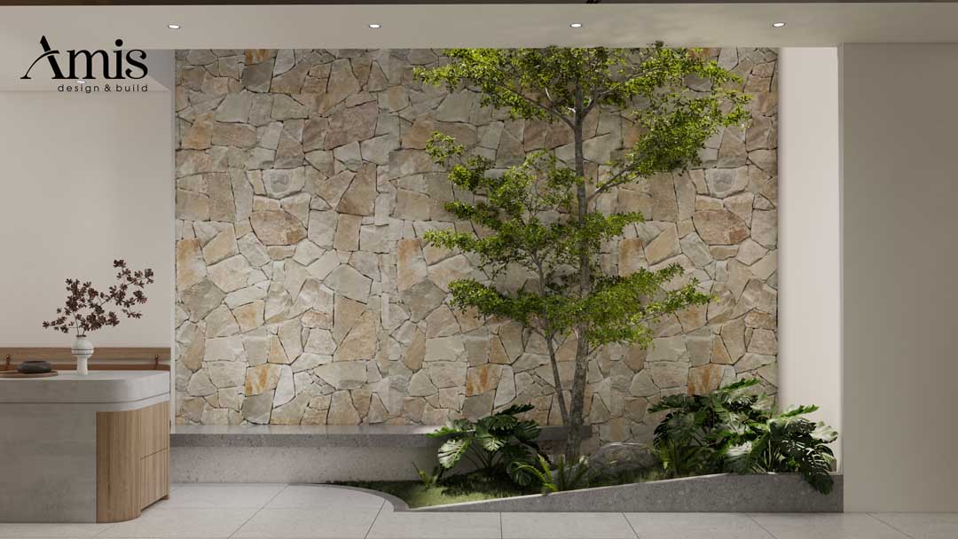 Cây xanh được đặt ở các vị trí chiến lược, không chỉ làm đẹp không gian mà còn góp phần cải thiện chất lượng không khí trong nhà. Việc lựa chọn loại cây phù hợp với điều kiện ánh sáng trong nhà thể hiện sự chuyên nghiệp trong thiết kế.